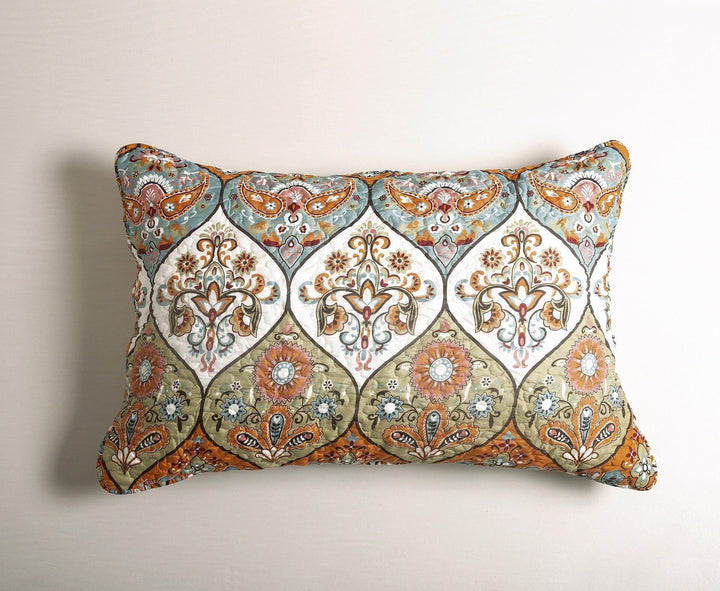 Bohemian Floral Paisley Garden Coral Teal Quilted Bedspread Set (LH1403)