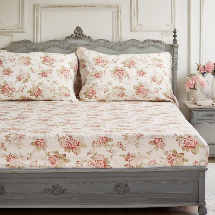 Hint of Mint Dainty Cottage Floral Roses Cotton Fitted Sheet w/ Pillow Case (3036)