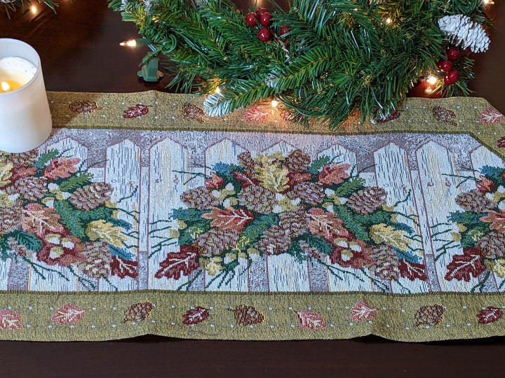 Rustic Floral Bouquet Lights Holiday Tapestry Dining Table Runner (6068)