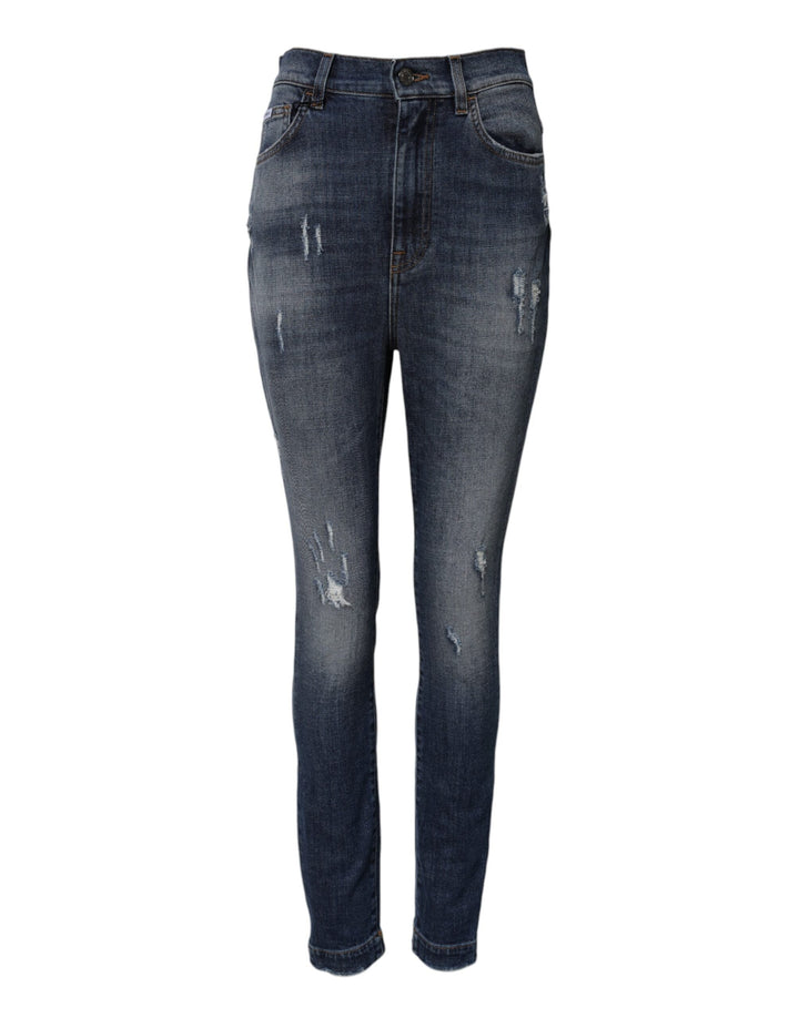 Dolce & Gabbana Blue Washed Cotton High Waisted Denim Jeans