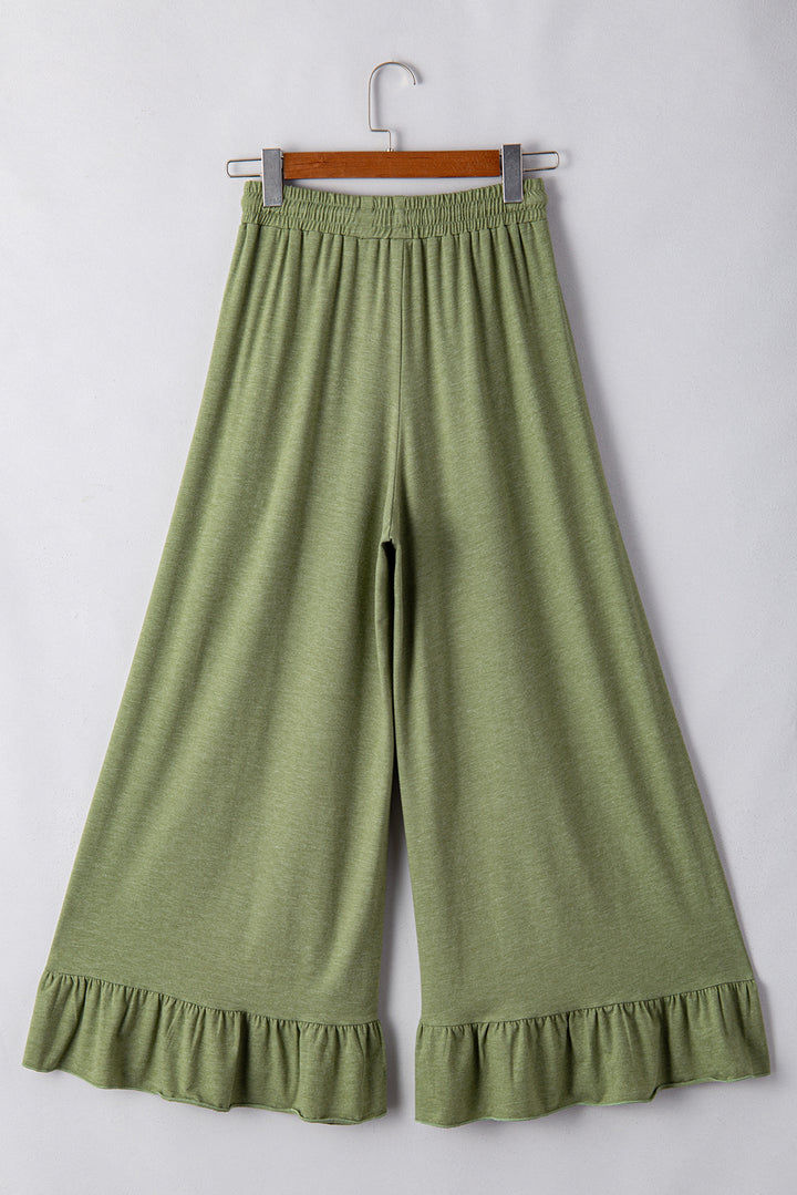 Dune Solid Color Ruffle Hem Wide Leg Pants