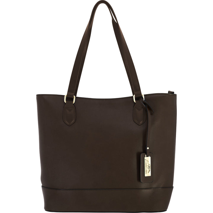 Our Evelyn bag is the perfect combination of simple, reliable, and durable giving you a tote bag for various purposes. The slim rectangular bag has one main pocket with two compartments for everyday items sitting on both sides of one holster compartment secured with a high-quality top zipper. This bag is so large you can fit your tablet, cosmetic bag, files, a journal, or even your lunch in it! This purse is finished with cut-resistant top handles that fit comfortably over the shoulder enforced with gold hardware.
