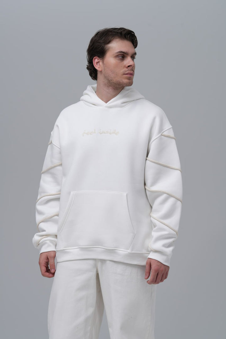 The "Feel Inside" Embroidered Hoodie blends artistic embroidery with a unique 3D rope detail, creating a hoodie that is as expressive as it is comfortable.