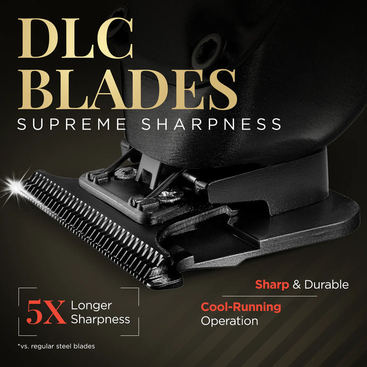 CERAMIC & DLC BLADES - Silver trimmers with ceramic blades and black and gold models with DLC offer precise cuts, cool operation, and elegance, ensuring top skin comfort and satisfaction.