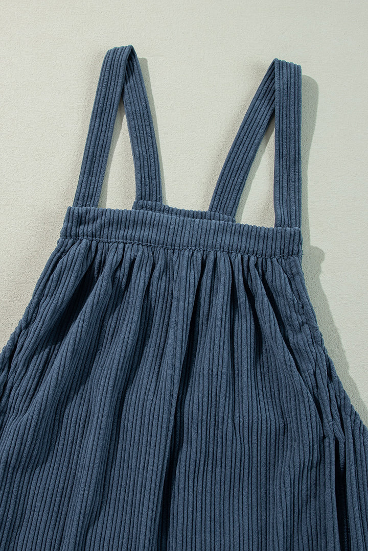 Gray Morn Plain Pocketed Loose Fit Corduroy Overalls