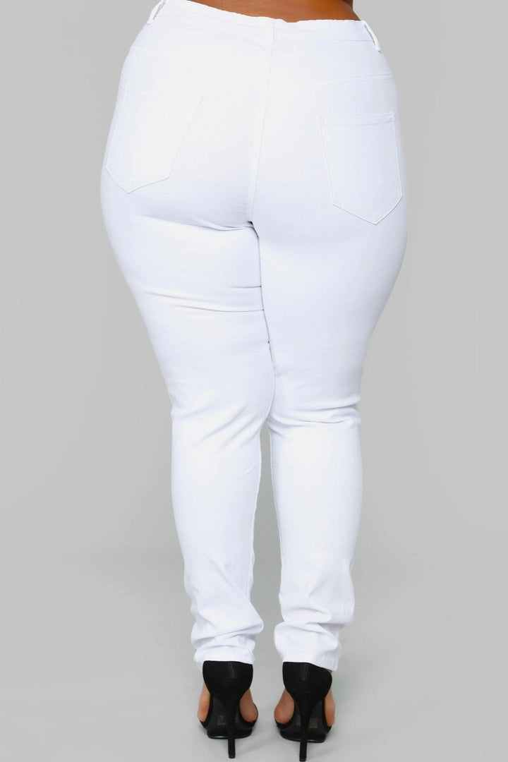 Kayla Plus Size High Rise Destroyed White Skinny Jeans 🤍