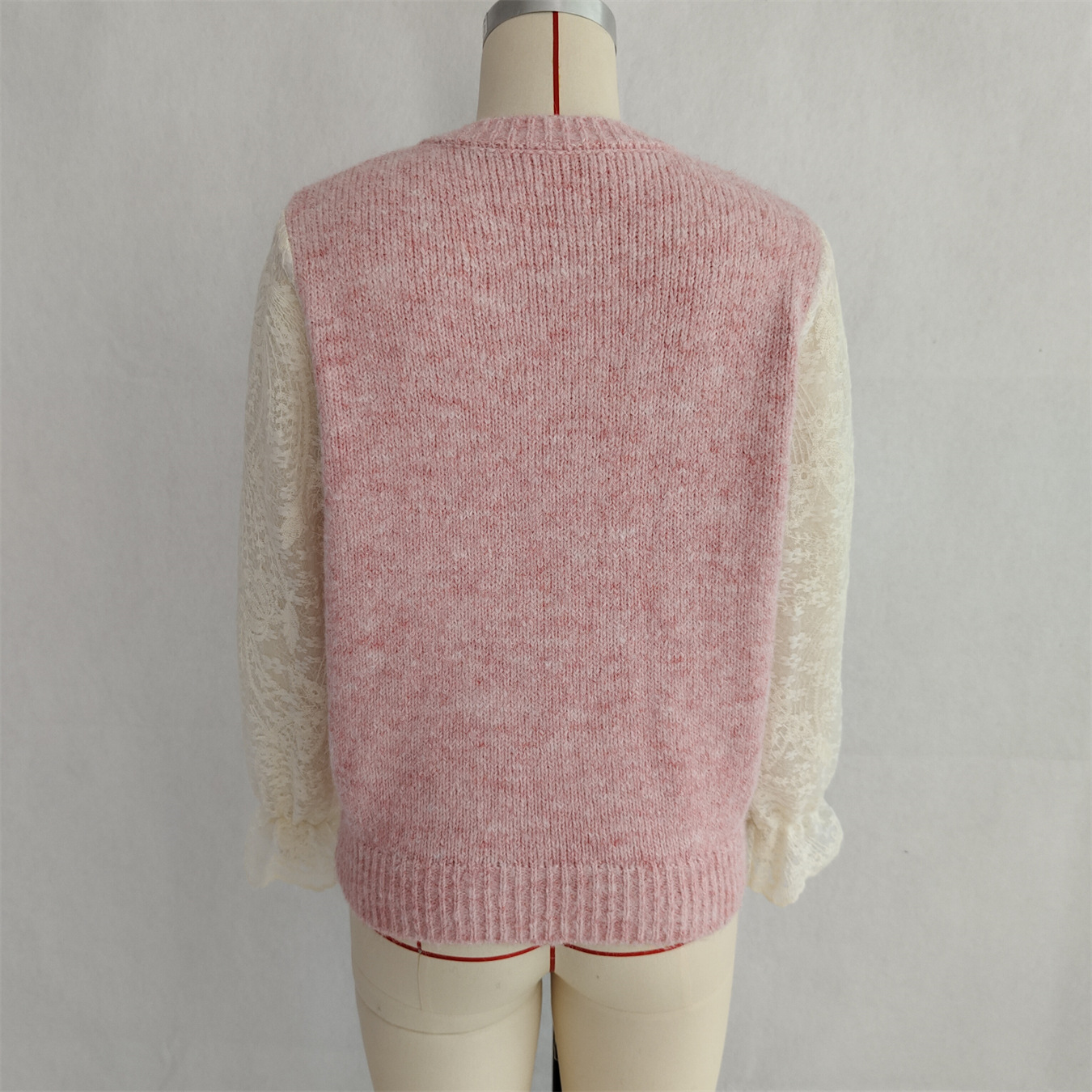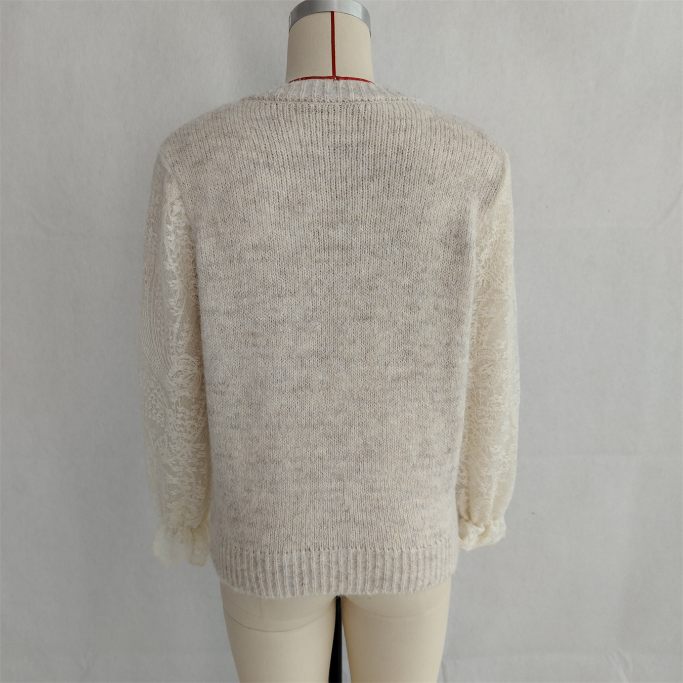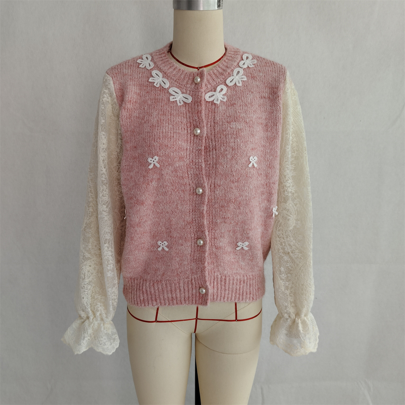 Lace Sleeved Stitched Bow Knitted Sweater Cardigan