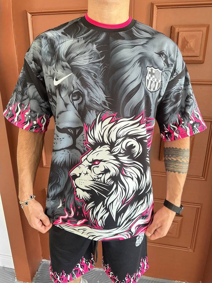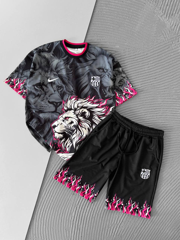Unleash fearless energy with the Lion Blaze Men's Graphic Tee & Flame Shorts Set – a striking co-ord designed for those who live loud. With a roaring lion graphic in flaming pink and black tones, this set combines visual impact with everyday comfort, creating a streetwear essential that refuses to be ignored.