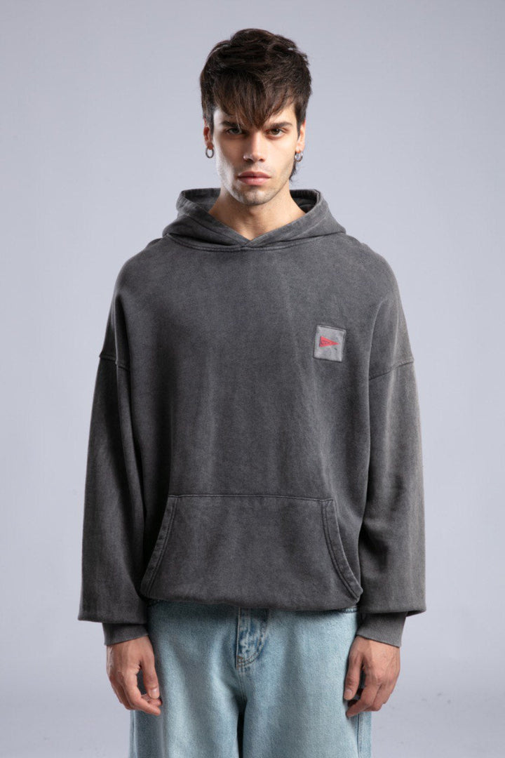 Oversized '8' Plaid Patch Hoodie - Vintage Washed Pullover