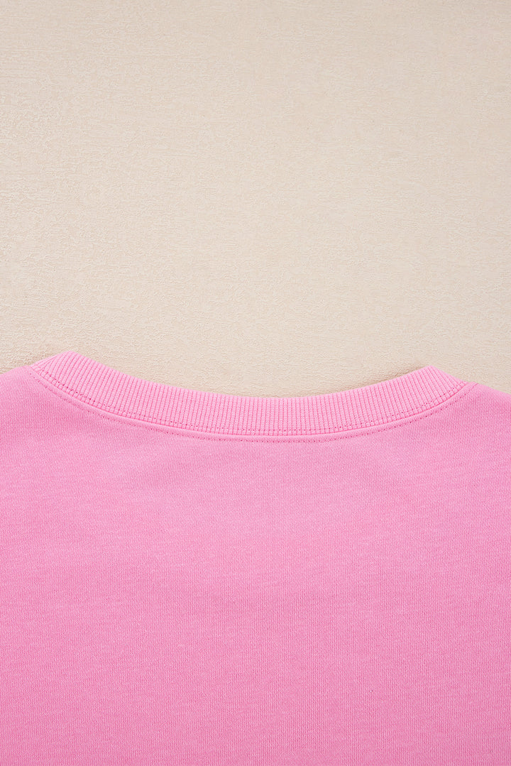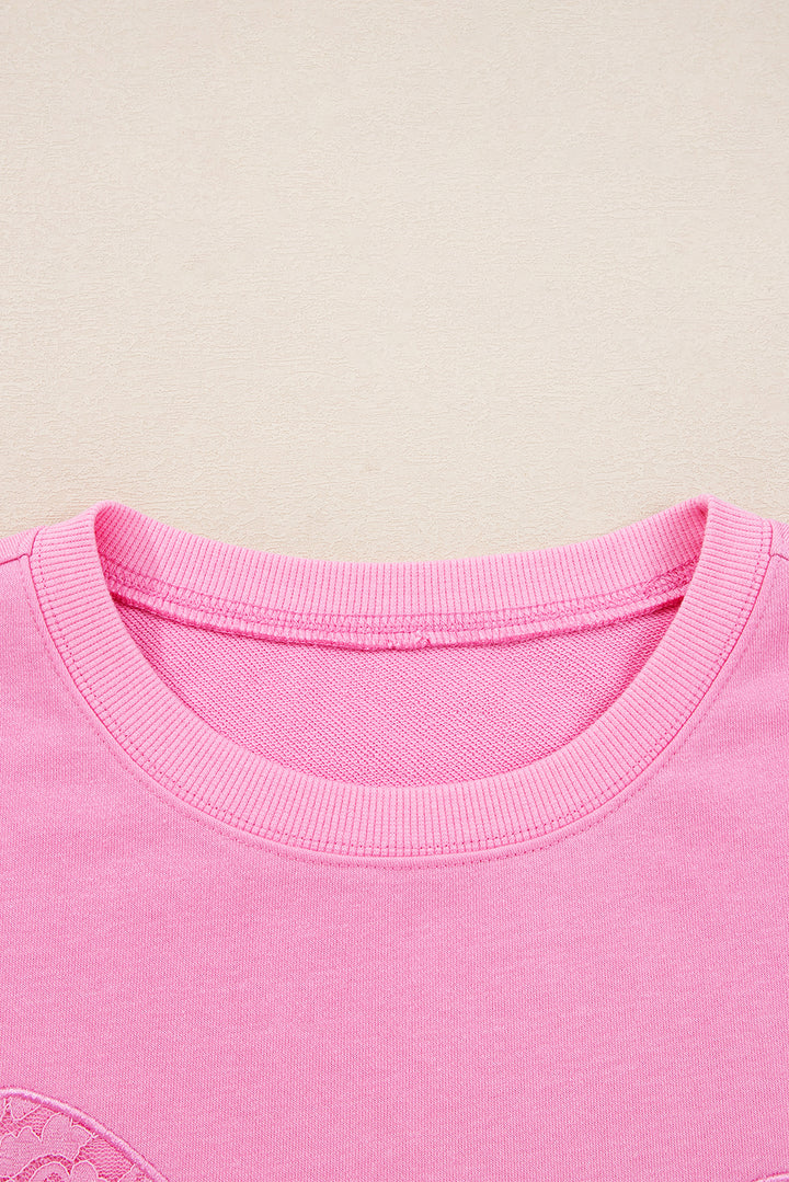 Pink Lace Bow Embroidered Dolman Sleeve Plus Size Sweatshirt
