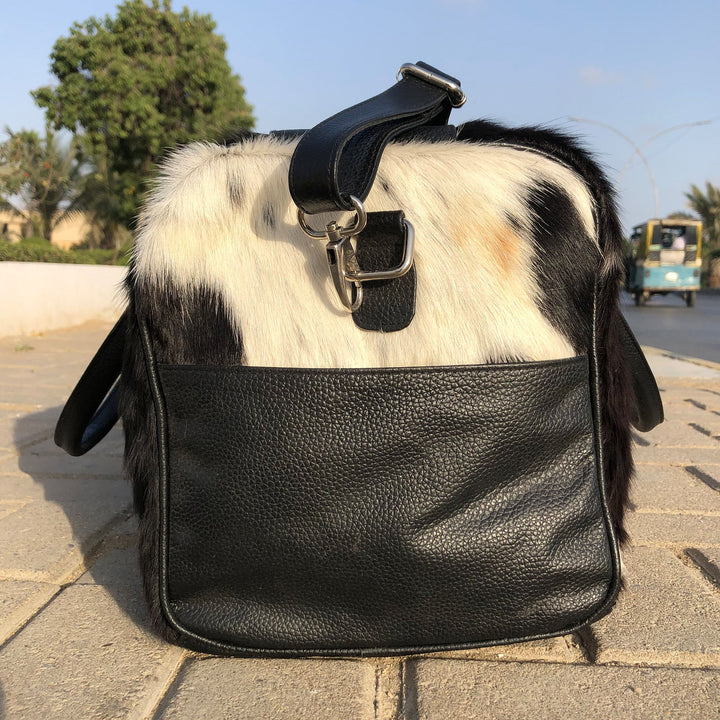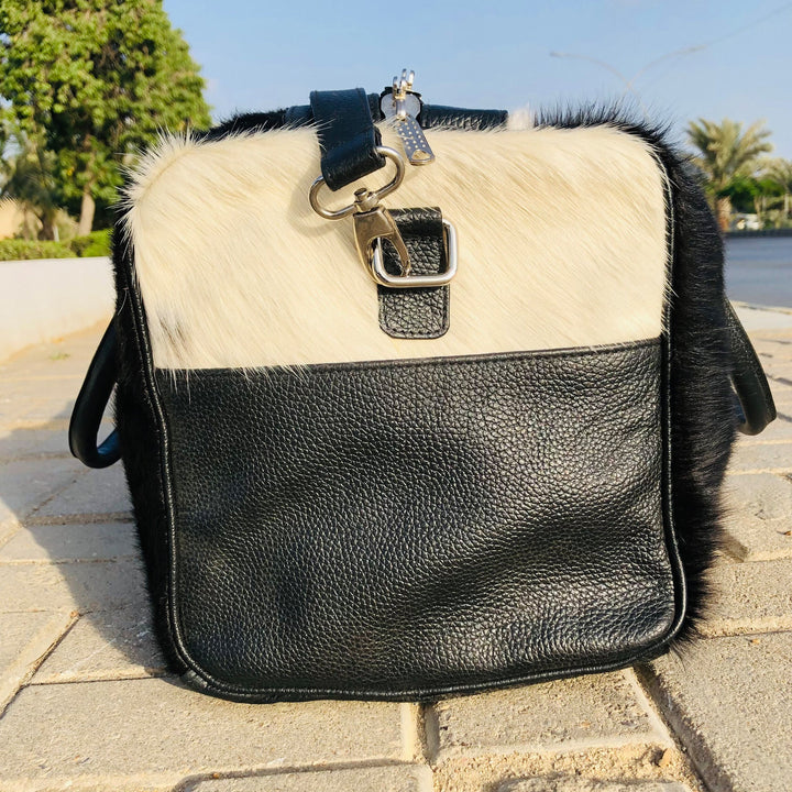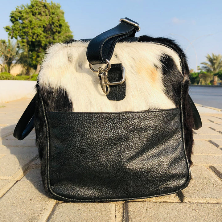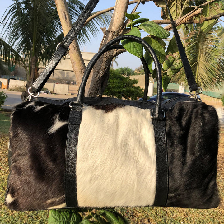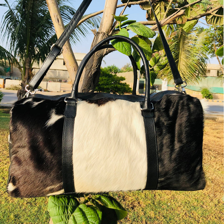 To keep your cowhide duffel bag looking its best, we recommend gently wiping it with a damp cloth to remove any dirt or dust and avoiding exposure to direct sunlight or excessive heat. Please note that each bag is handcrafted, and the unique pattern of the cowhide may vary slightly from the images shown. This only adds to the charm and authenticity of your one-of-a-kind duffel bag, making it a true reflection of your personal style and taste. Embrace your inner wanderlust and indulge in the luxury of this exceptional cowhide duffel bag that will undoubtedly become your go-to travel companion for years to come.