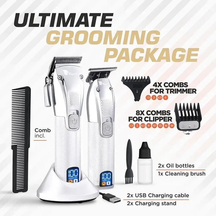 • 🚀 TURBO POWER / HEAVY DUTY MOTORS - These hair clippers and trimmer have an improved turbo power motor to get the job done quickly and efficiently, they are the ultimate tool for achieving salon-quality results, handle with ease even the thickest hair, and give you the perfect detailed cut, every time. Plus they have low noise motors and it does not make the annoying noise that disturbs the ear.