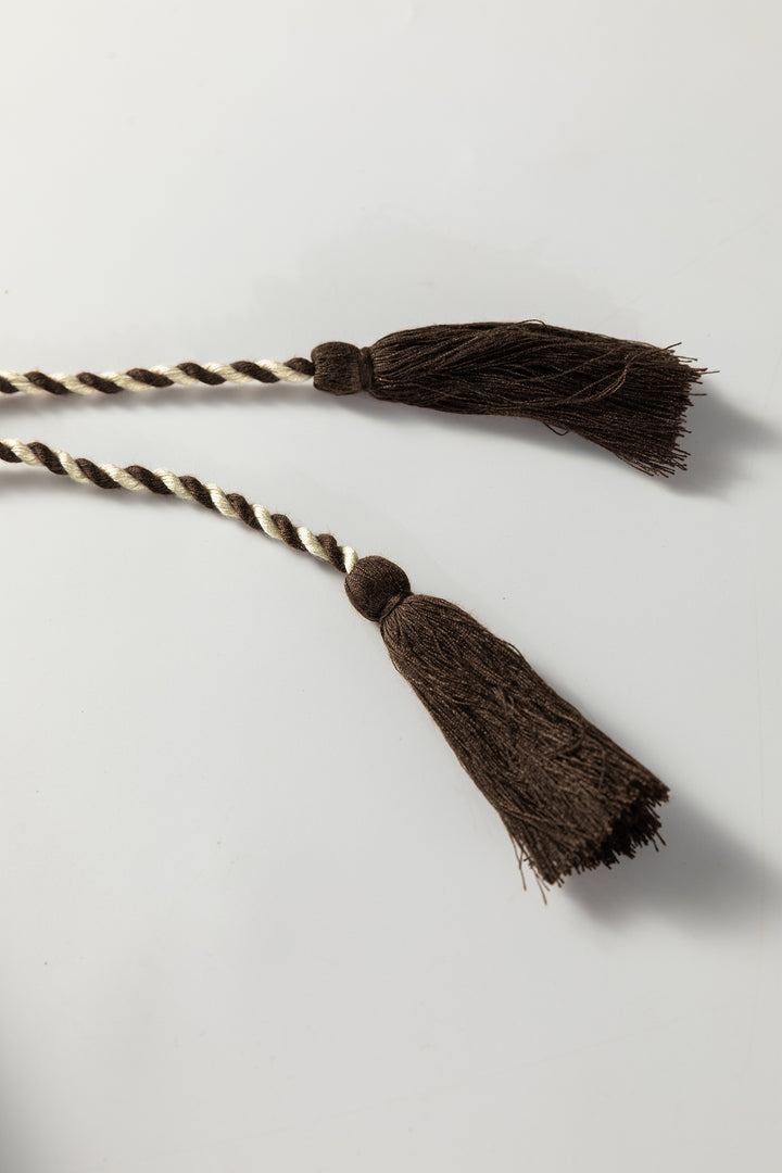 Tassel tie detailing provides playful movement and bohemian-inspired flair.
