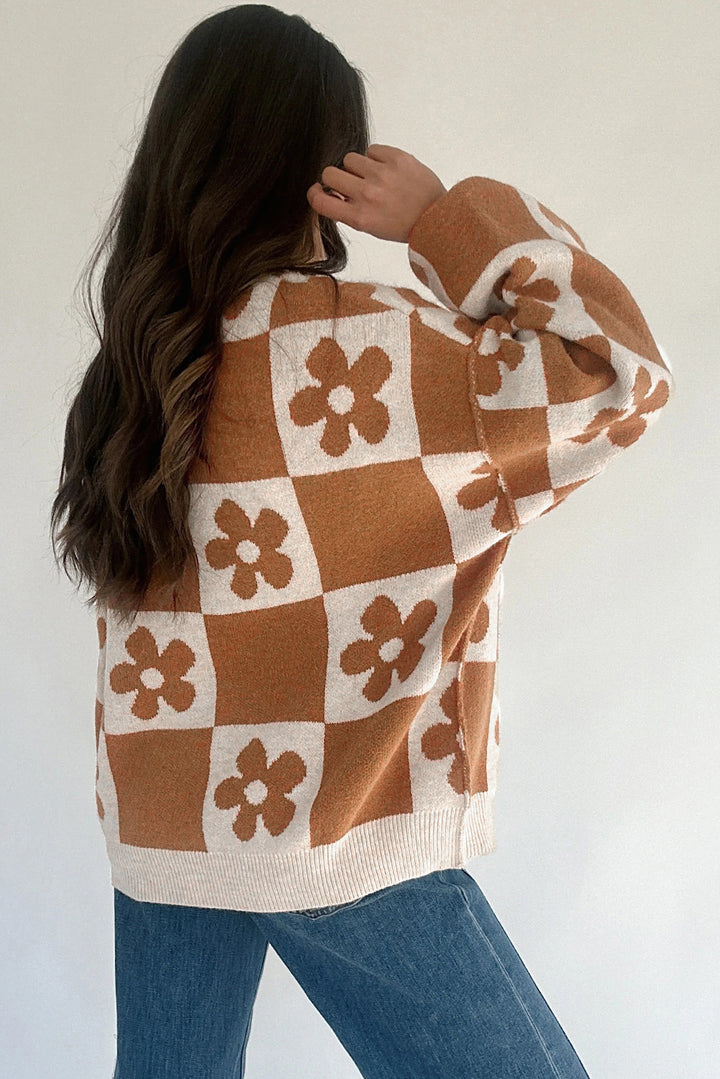 • Embrace the charm of the Flower Colorblock Checkered Henley Sweater, featuring a captivating fusion of plaid and floral patterns for a unique and stylish look.