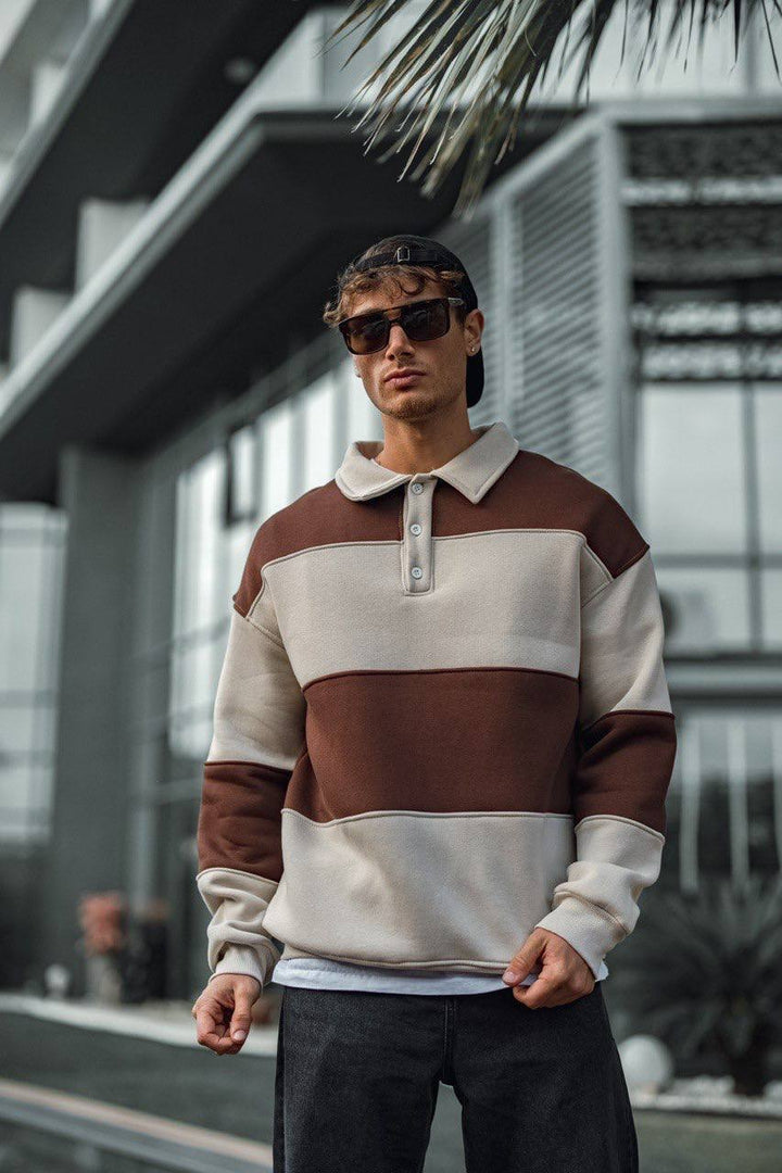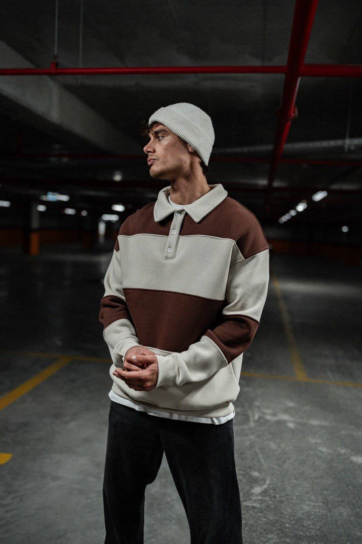 Shirt Collar Two-Toned Buttoned Sweatshirt - Stylish and Comfortable Design