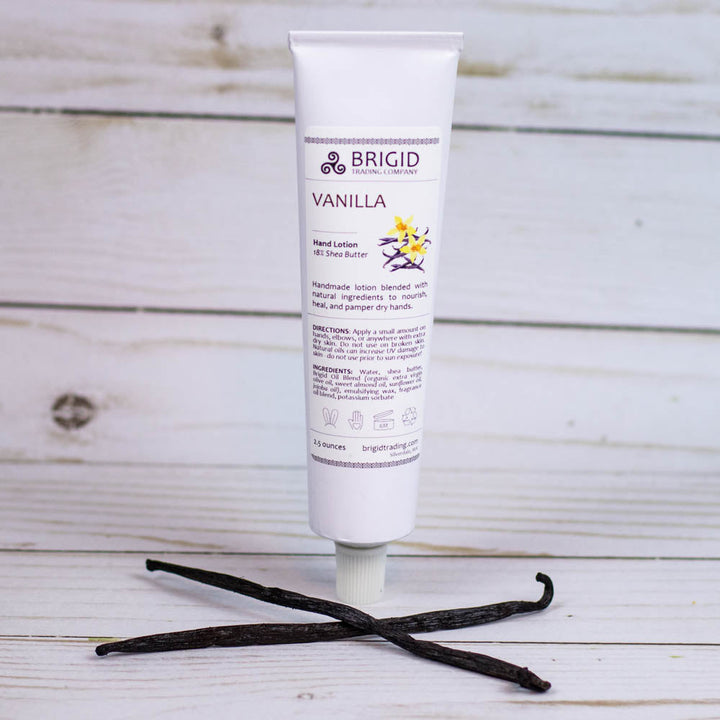 We hand-blend our Vanilla natural hand lotion in small batches with natural ingredients, like pure plant extracts oils and African shea butter, to leave all types of skin feeling soft, smooth, and nourished. Using natural ingredients full of vitamins, minerals, and antioxidants, our Vanilla natural hand lotion is a smooth, luxurious, non-greasy lotion good for all sorts of skin types. Indulge the senses with our blend of French vanilla, Tahitian vanilla, and Madagascar vanilla, with real vanilla extract.