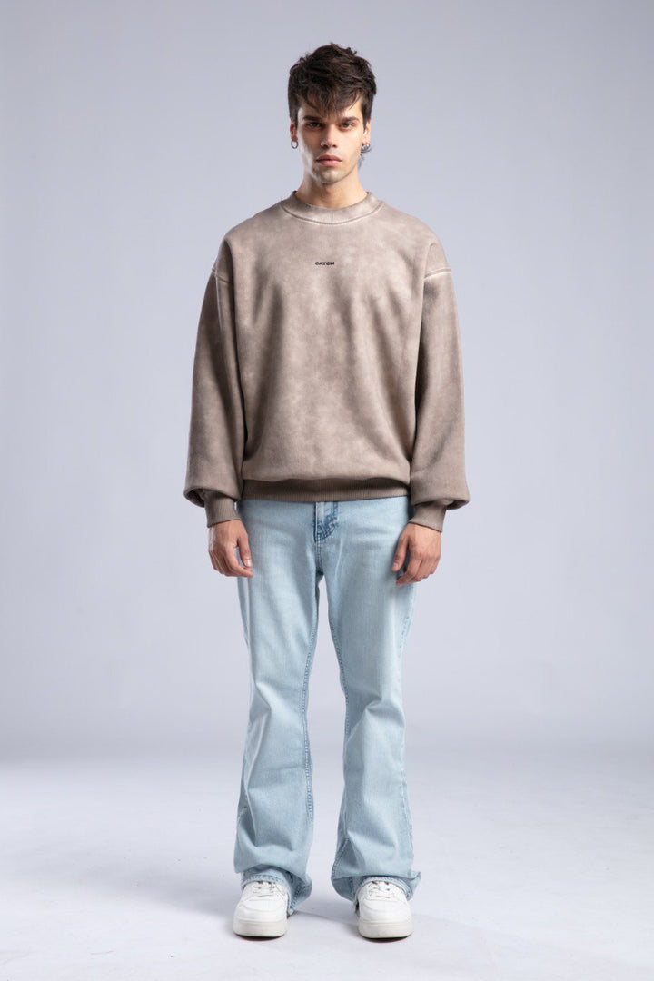 The Vintage Washed Crewneck Sweatshirt delivers timeless style with a modern oversized fit. Washed tones and minimal logo detailing give this pullover a premium vintage aesthetic that never goes out of fashion.