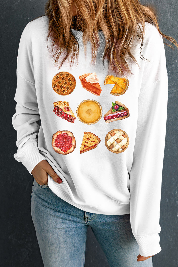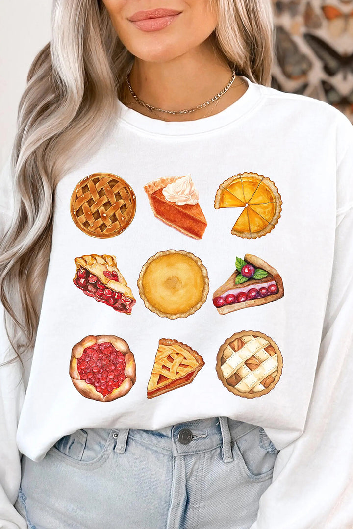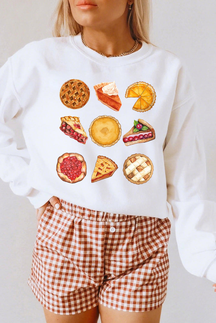White Yummy Pie Graphic Heat Transfer Printing Thanksgiving Sweatshirt