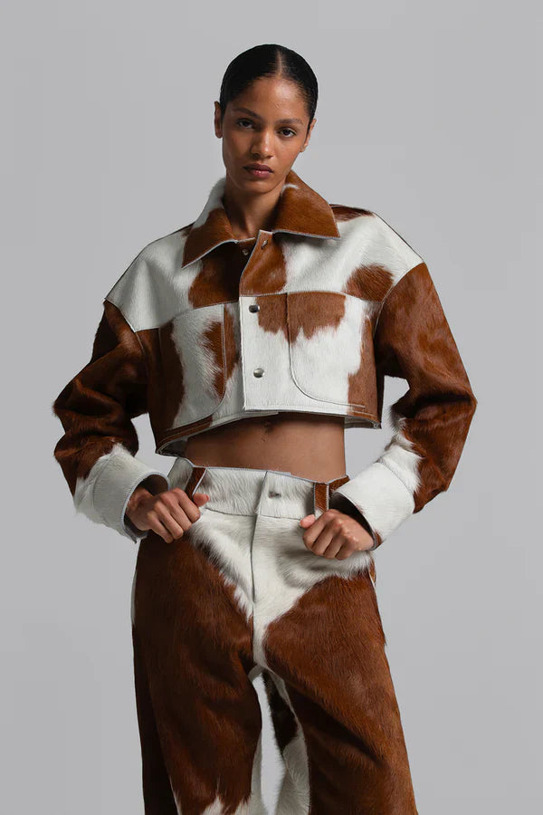 Women Cropped Cow Print Jacket & Pant – Genuine Hair-On Pony Hair
