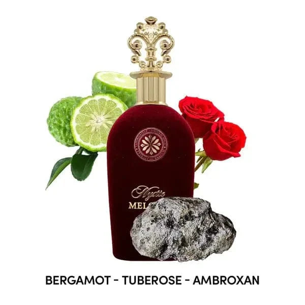 The alluring perfume features a unique combination of top, middle, and base notes that harmonize perfectly. At the top, you may recognize fresh floral scents that tickle your senses, transitioning into a heart of alluring jasmine and sweet vanilla. As the fragrance dries down, the warm notes of sandalwood emerge, adding depth and richness to the scent profile. This well-balanced composition makes Mystic Melody versatile, so it's great for both day and night, casual outings, and elegant events.