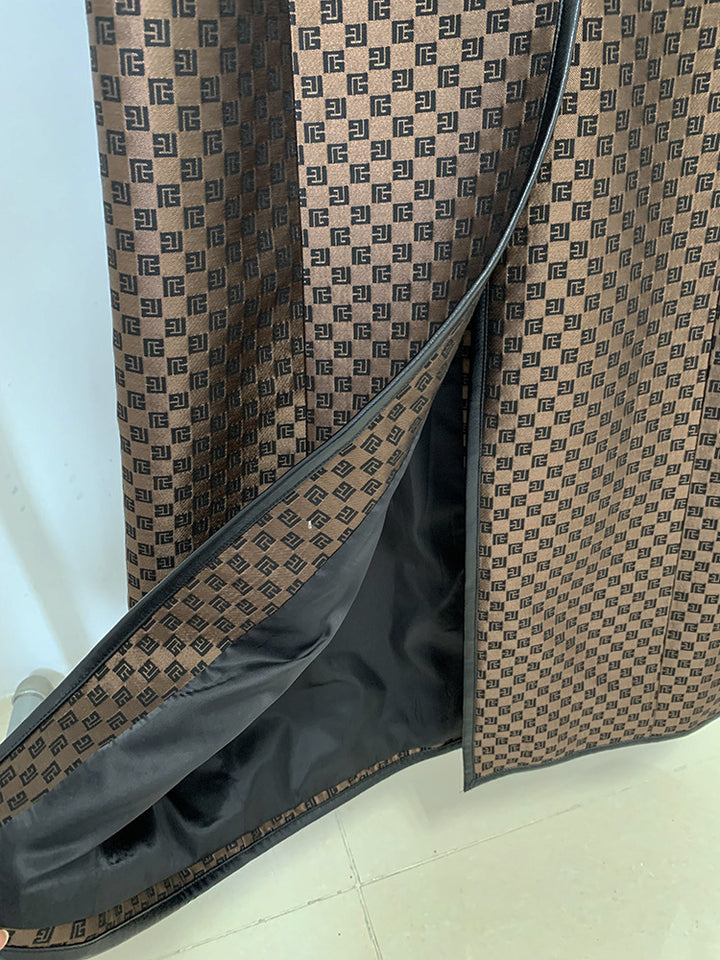 Star Belted Jacquard Maze Pattern Long Trench Coat