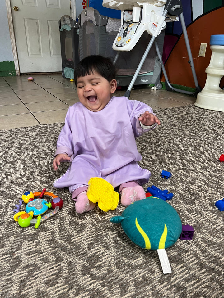 The BodyBib covers your little one from chest to ankle and fits kids 9 months to 2 years old — so you can say goodbye to outfit changes, endless wipe-downs, and laundry headaches.