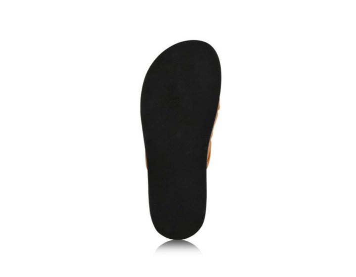 Artisan hand crafted in Brazil, this podiatrist designed slide features a flexible anatomical rubber unit bottom outsole, padded leather wrapped insole and all leather upper. Available in black and camel leather for a limited time.