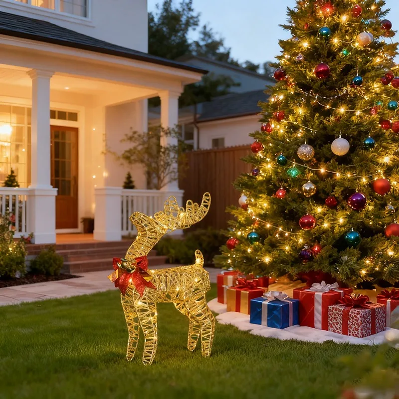 1pcs Lighted Christmas Decoration Elk Deer Winter Indoor Outdoor Front Yard Porch Lights 2025 Christmas Decoration