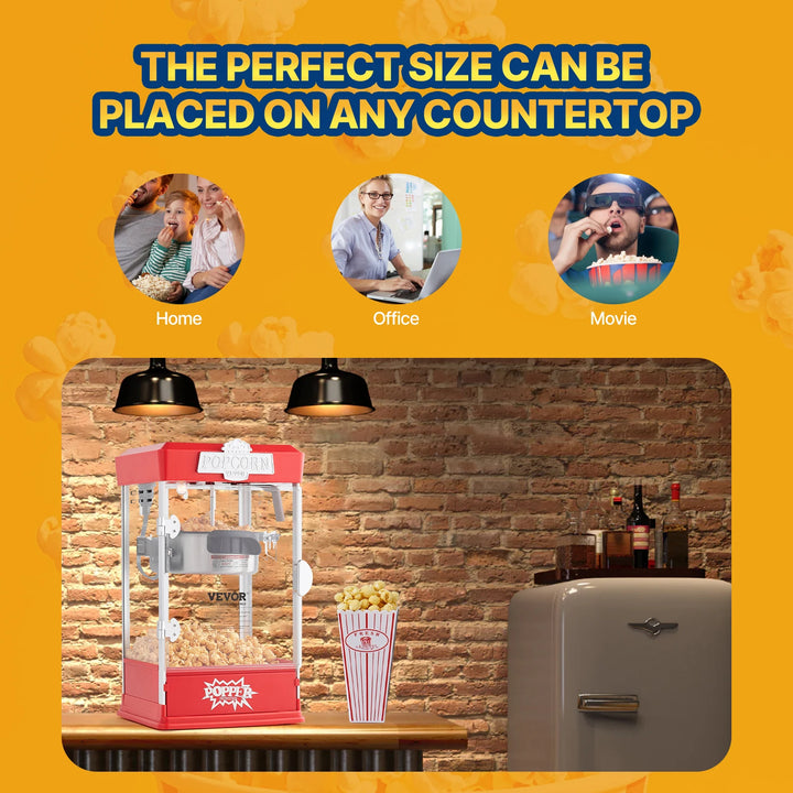 Effortless Use and Maintenance: This popcorn machine is designed for easy operation. The dual switch system simplifies the process, while the warming tray keeps popcorn fresh. With a light to highlight its freshness, it’s perfect for busy events or parties.