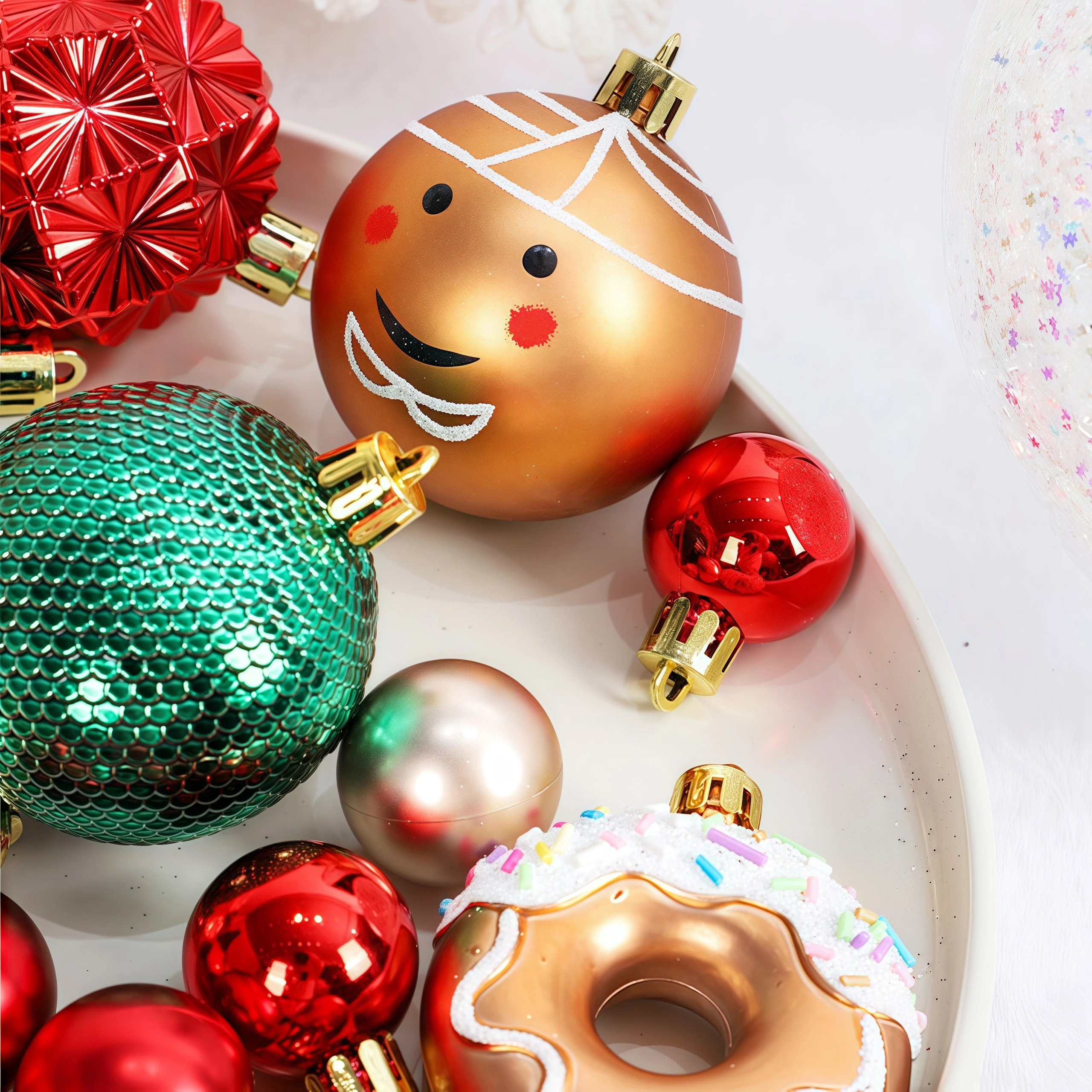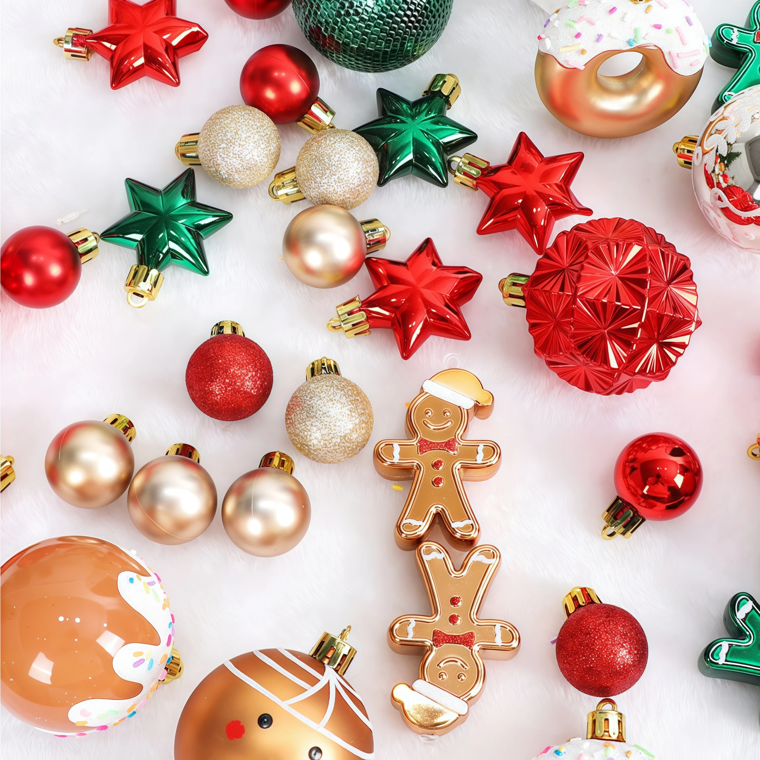 Rich Shapes:In addition to standard spherical shapes, there are also bell-shaped, gingerbread man-shaped, and Christmas tree-shaped decorations, adding fun and decorative depth.