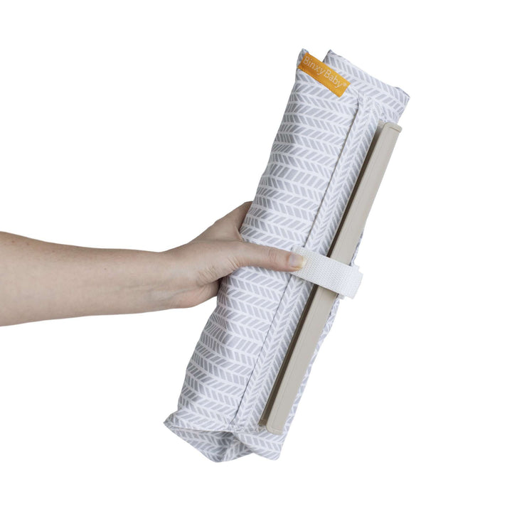 Our comfy Binxy Baby shopping cart hammock in a sweet neutral gray arrow print quickly and easily clips onto most carts, hangs elevated so you have plenty of room for groceries, then simply rolls up to fit in your purse or diaper bag when finished. Most infant car seats sit snugly inside the Shopping Cart Hammock and can be secured using the included safety strap. Learn more about how the Shopping Cart Hammock works and how to put it in your cart.