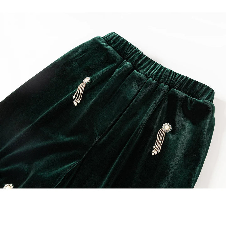 Cocoa Yacht Club Dark Green Velvet Pants Suit