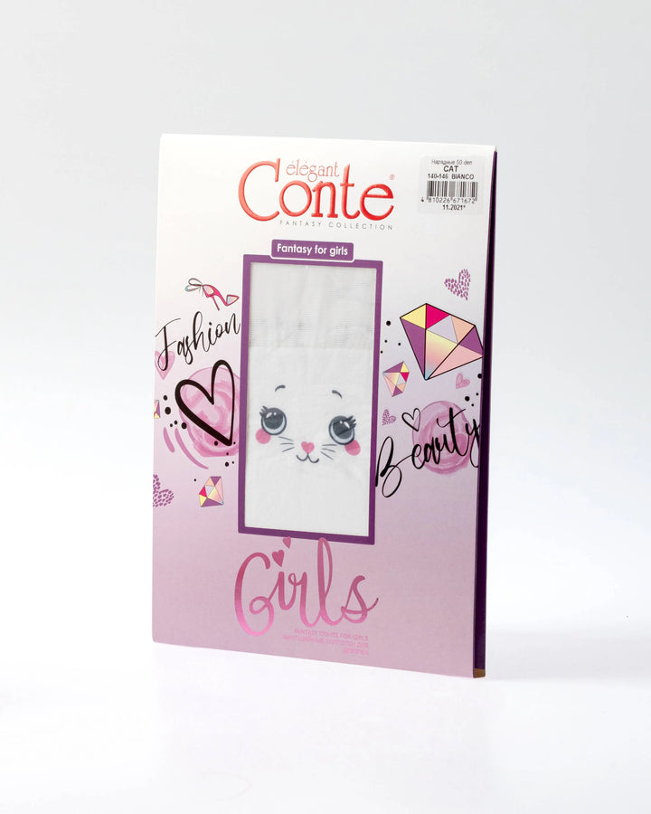 Tights CAT with golf imitation and a “cat” print are made for little fashionistas. Add charm to everyday and festive outfits. Elastic, soft to the touch, with a comfortable waistband.