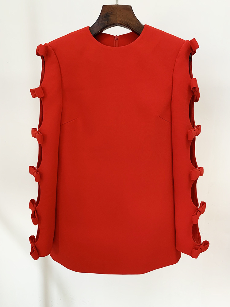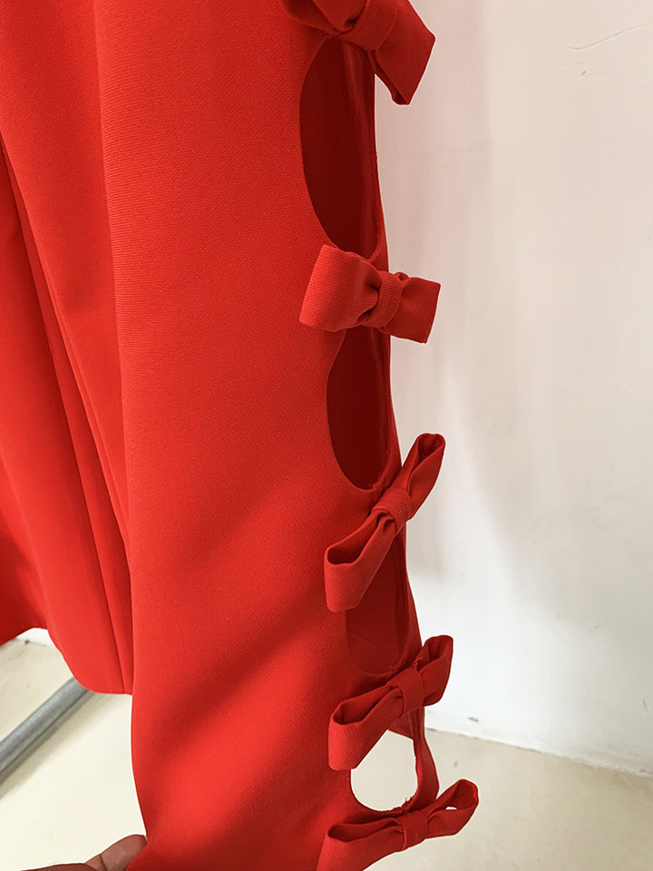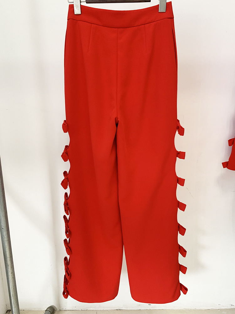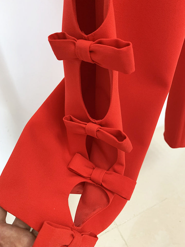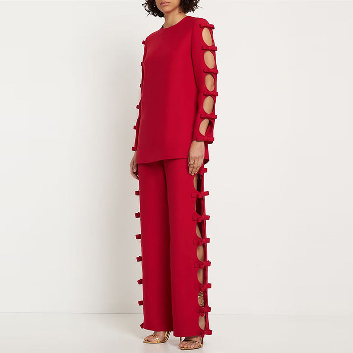 Hollow Out Bow Long-Sleeved Top & Straight Leg Pants
