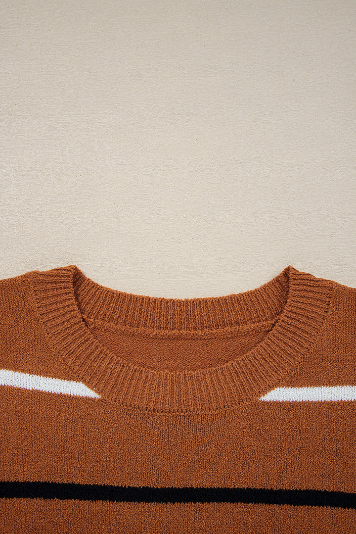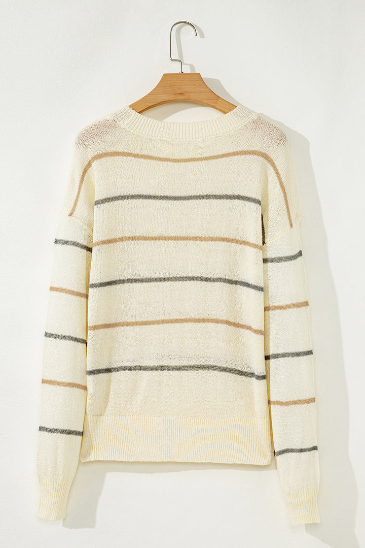 Multicolour Striped Ribbed Edge Drop Shoulder Sweater
