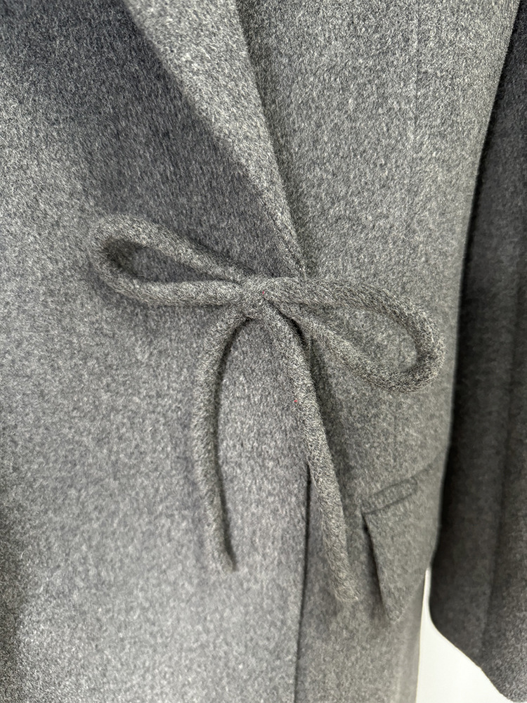 Slim Fit Bow Long Cashmere Coat